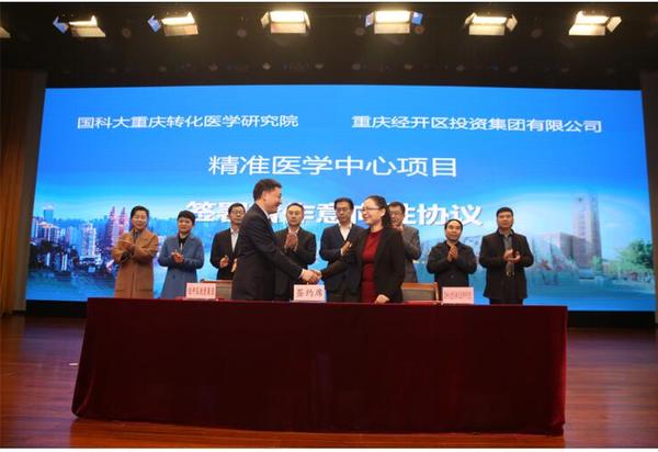 2018年11月23日上午,重庆经开区投资集团与中国科学院大学(以下简称“国科大”)重庆转化医学研究院共建重庆转化医学研究院精准医学中心项目(以下简称“精准医学中心”)合作意向性协议签约仪式,在重庆市第十一中学举行。