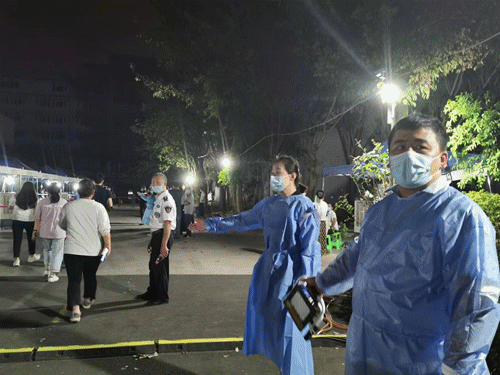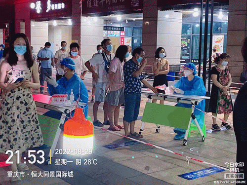 为满足周边企业员工三班制上下班时间及市民检测需求,本检测点的工作时间从清晨到中午,从傍晚到深夜,来自重庆第五人民医院的医护人员和投资集团的志愿者们再一次并肩战斗!