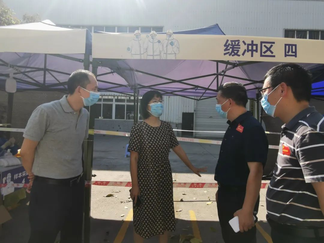 8月24日,区委副书记、重庆经开区党工委副书记、管委会主任黄红及经开区党工委委员、副主任谭厚江,先后视察由投资集团负责的诚邦科技产业园大规模人群核酸采样点。对采样点建设运行情况予以肯定,对志愿支援人员提出相关工作要求。管委会办公室多次到场指导。第五人民医院领导来到采样点指导和看望采样医护人员,并代表医院对经开区投资集团体现国企担当、承担大规模人群集中采样工作表示感谢。