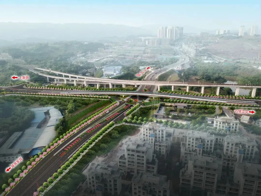 刘家坪立交位于茶园大道与通江大道相交的重要节点位置,毗邻刘家坪轨道站、长生桥轨道枢纽站、石塔立交,其建设启动以来一直备受市民关注与期待。