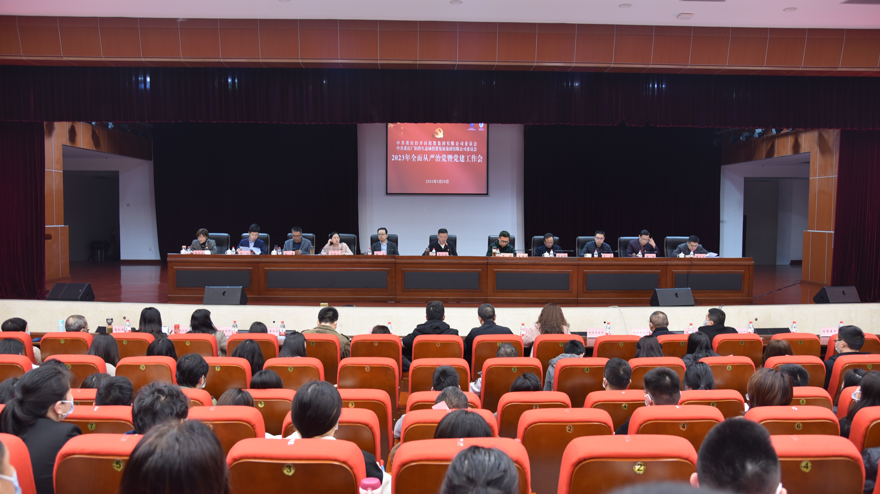 2023年3月29日下午,经开区投资集团党委、广阳湾投资集团党委召开2023年全面从严治党暨党建工作会,集团领导班子、集团及子公司中层及以上干部、各支部党员及职工代表130余人参加会议。