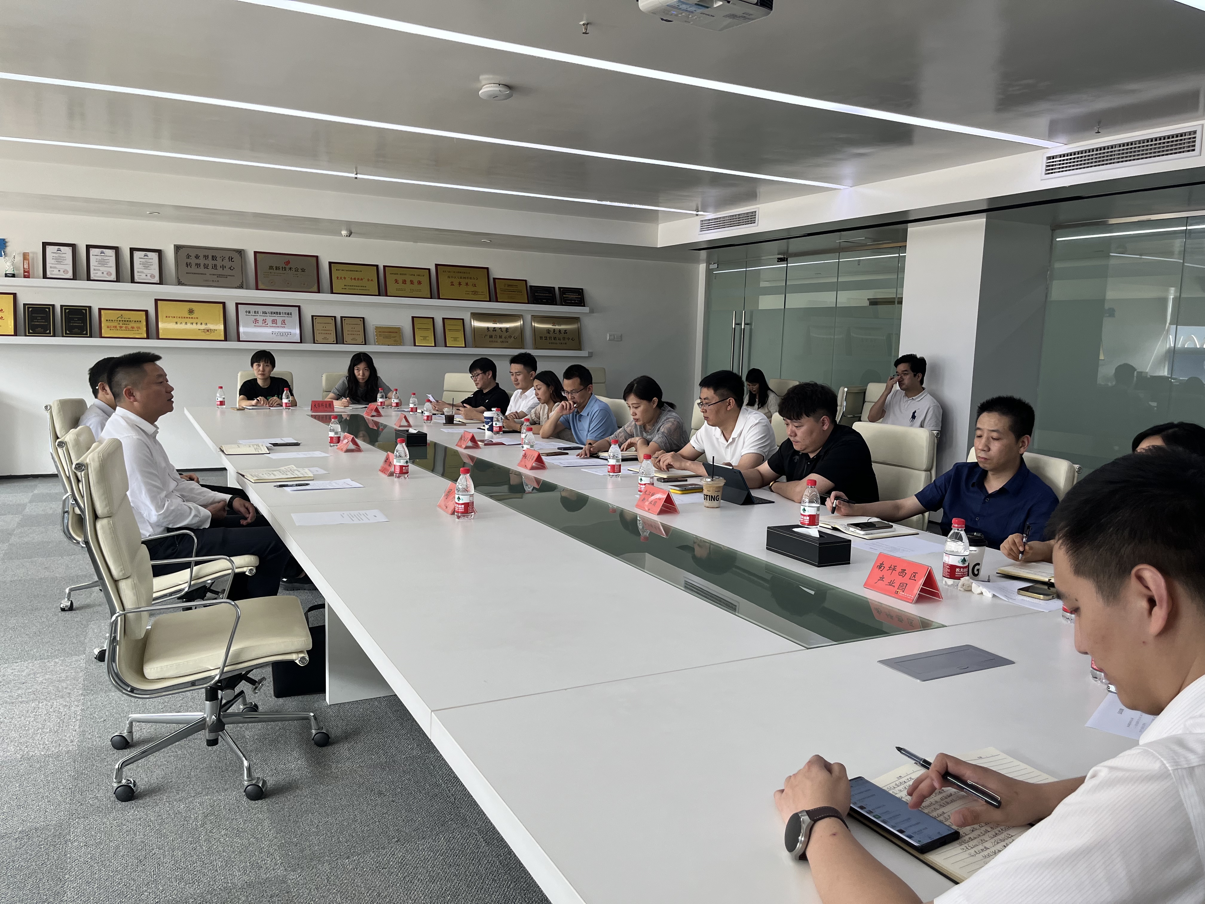 会上,产业运营部负责人汇报了各园区近期招商引资、企业服务、园区运营及近期金融服务情况。各园区负责人汇报了工作中存在的问题。