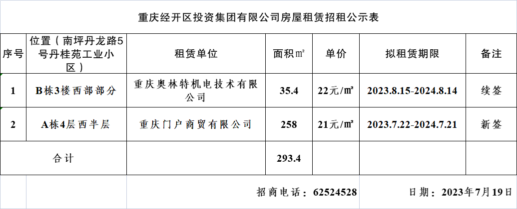南坪丹龙路5号丹桂苑工业小区AB栋部分楼层租赁结果公示
