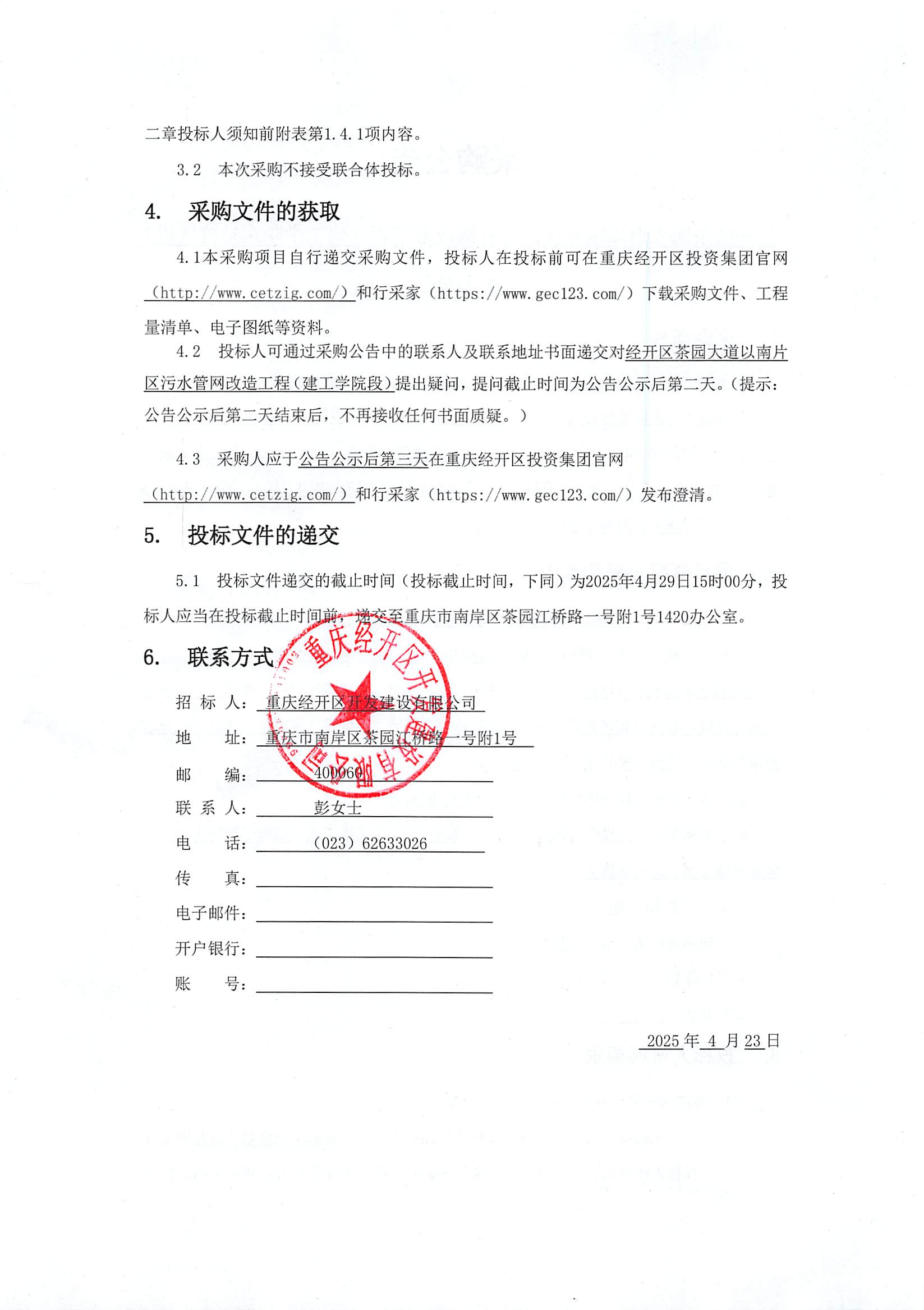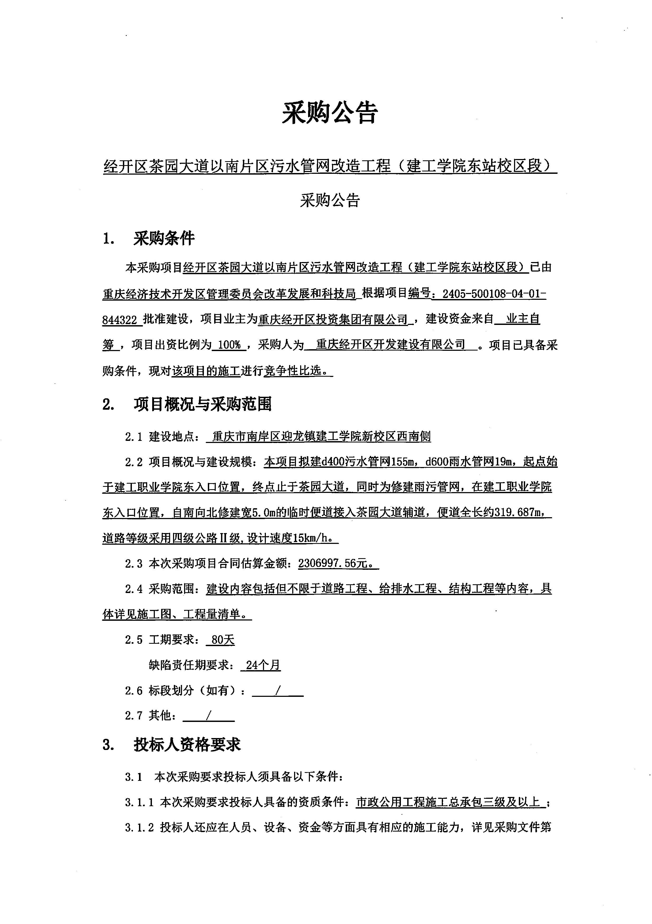 经开区茶园大道以南片区污水管网改造工程(建工学院东站校区段)采购公告