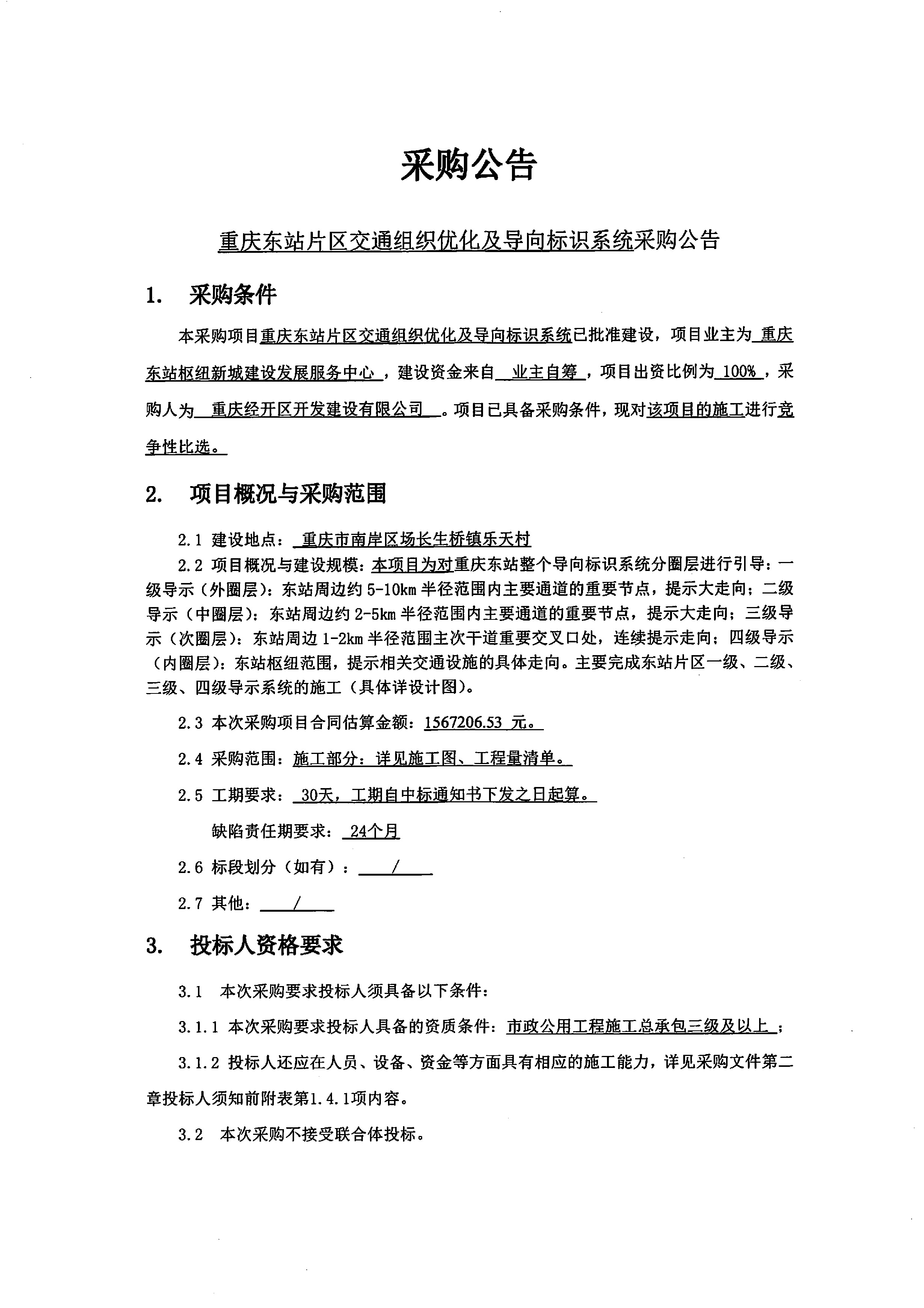 重庆东站片区交通组织优化及导向标识系统采购公告