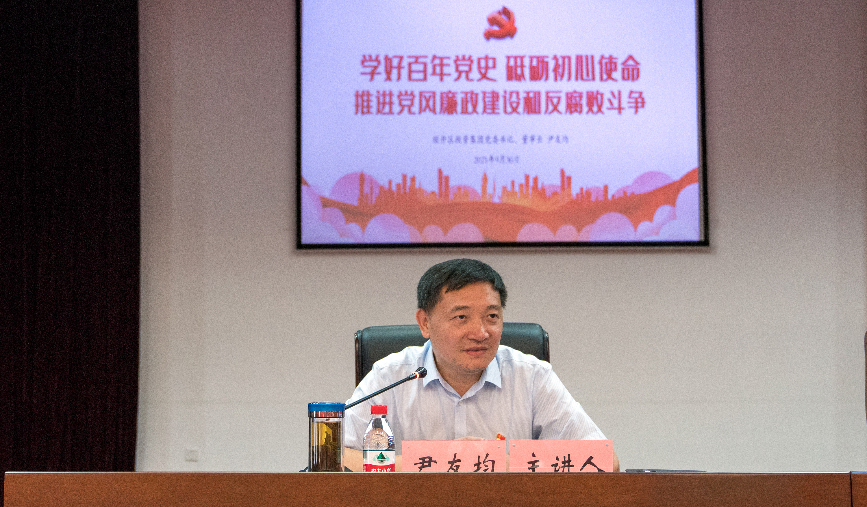 为扎实推进党风廉政建设和反腐败工作,切实提高党员干部廉洁从政意识和拒腐防变能力,9月30日,经开区投资集团党委开设廉政专题党课。集团党委书记、董事长尹友均以《学好百年党史,砥砺初心使命,推进党风廉政建设和反腐败斗争》为题,面向集团全体干部职工授课,引导大家讲规矩、守纪律、知敬畏、守底线。